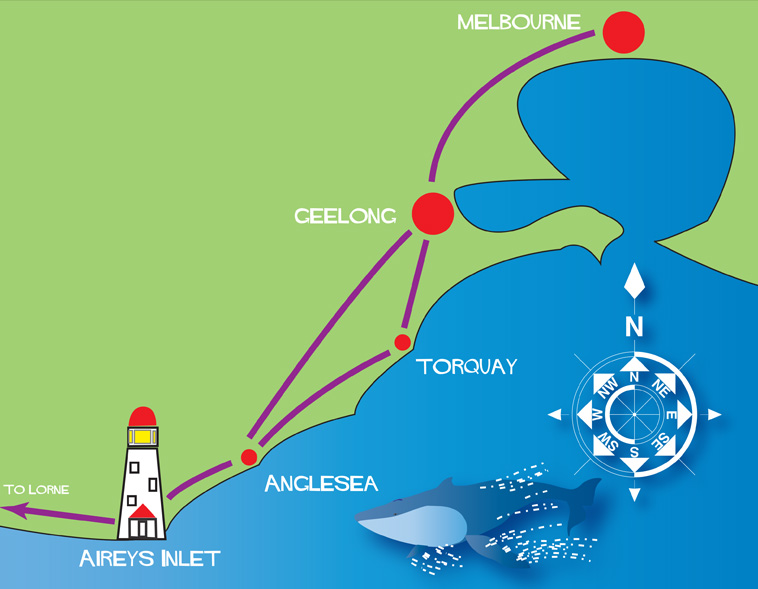 Aireys Inlet is only 120 kilometres from Melbourne, approximately 1 hour and 40 minutes by car,